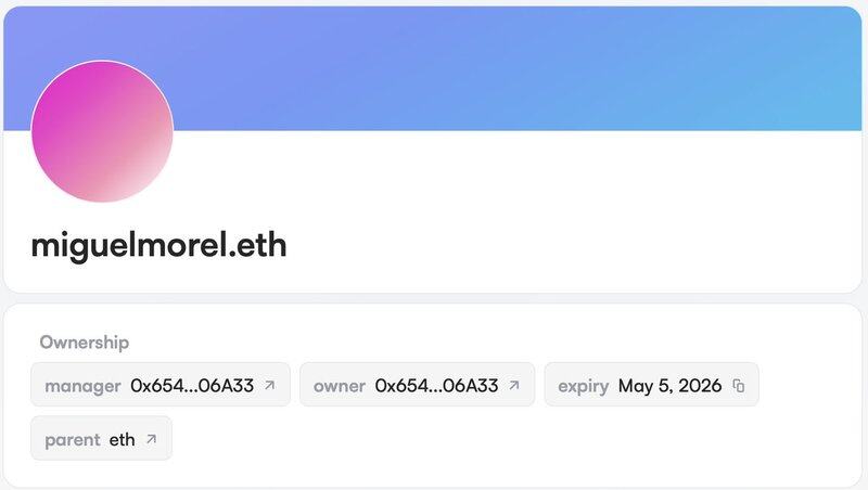 Para simplificar la búsqueda, he agregado miguelmorel.eth a la EOA.